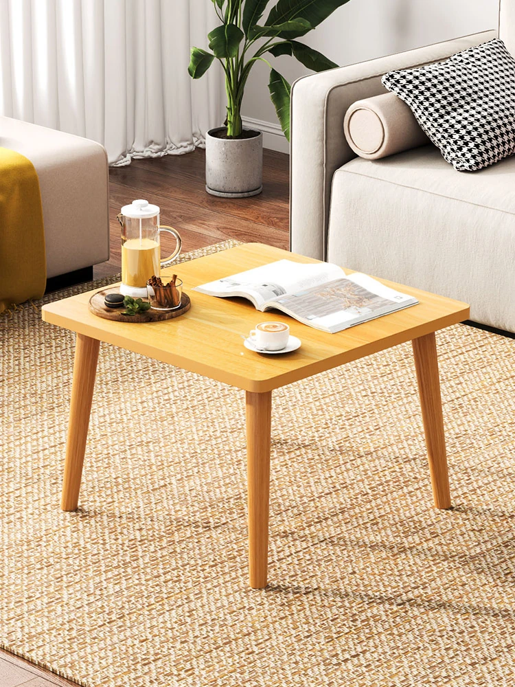 高級感あふれる無垢材のスクエアテーブル - モダンでシンプルなデザイン、小型住宅やリビングに最適なラウンジテーブル。寝転んでくつろげる、使い勝手抜群の家庭用テーブル!