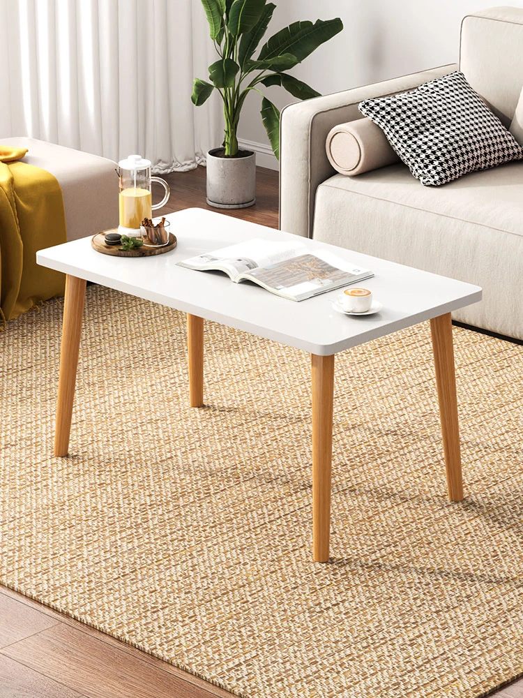 Modern Minimalist Small Coffee Table - Stylish Side Table for Living Room and Balcony, Made with Solid Wood Legs for a Touch of Luxury and Practicality. Perfect for Cozy Spaces!