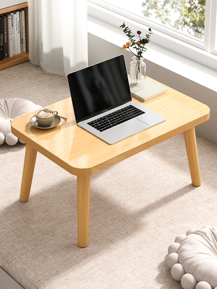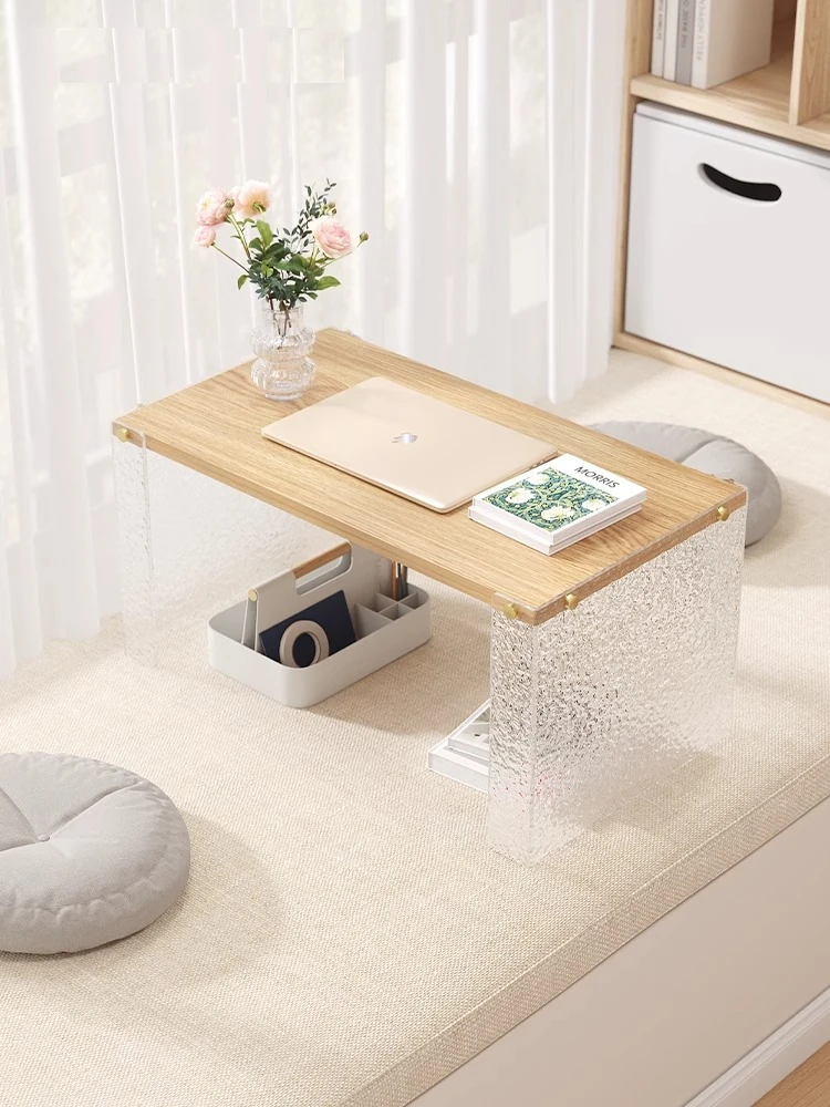 Wooden Bay Window Table - Compact Low Tea Table for Bedroom, Perfect for Tatami Style and Cozy Seating, Ideal for Small Spaces and Relaxing Moments