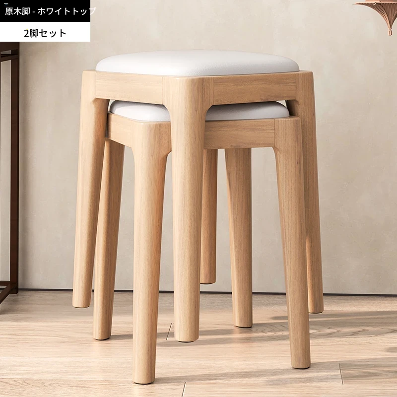 アップグレード版-ナチュラル色⭐ホワイトの座面【外貿ゴムの木 完成品発送】2脚