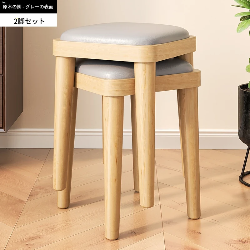 アップグレード版-ナチュラル色⭐グレーの座面【外貿ゴムの木 完成品発送】