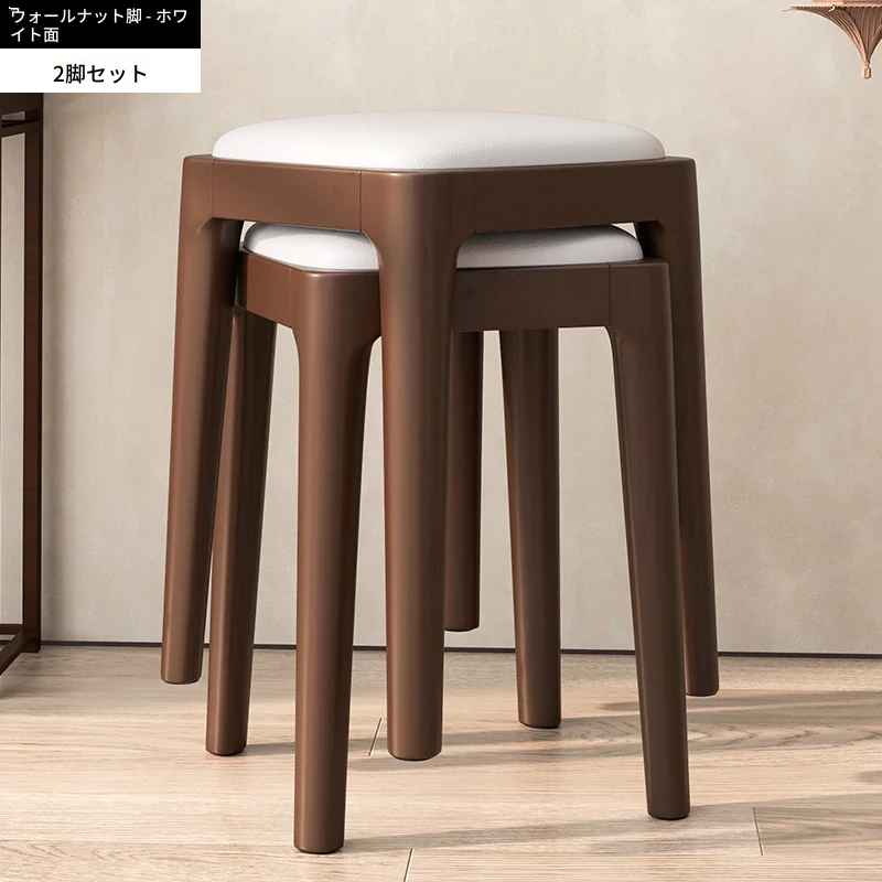 アップグレード版-ウォールナット色⭐ホワイトの座面【外貿ゴムの木 完成品発送】2脚