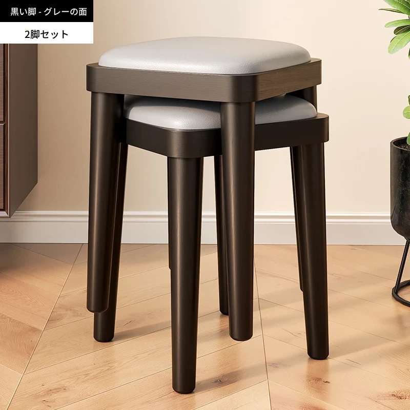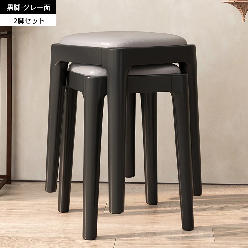アップグレード版-レトロブラック⭐グレーの座面【外貿ゴムの木 完成品発送】2脚