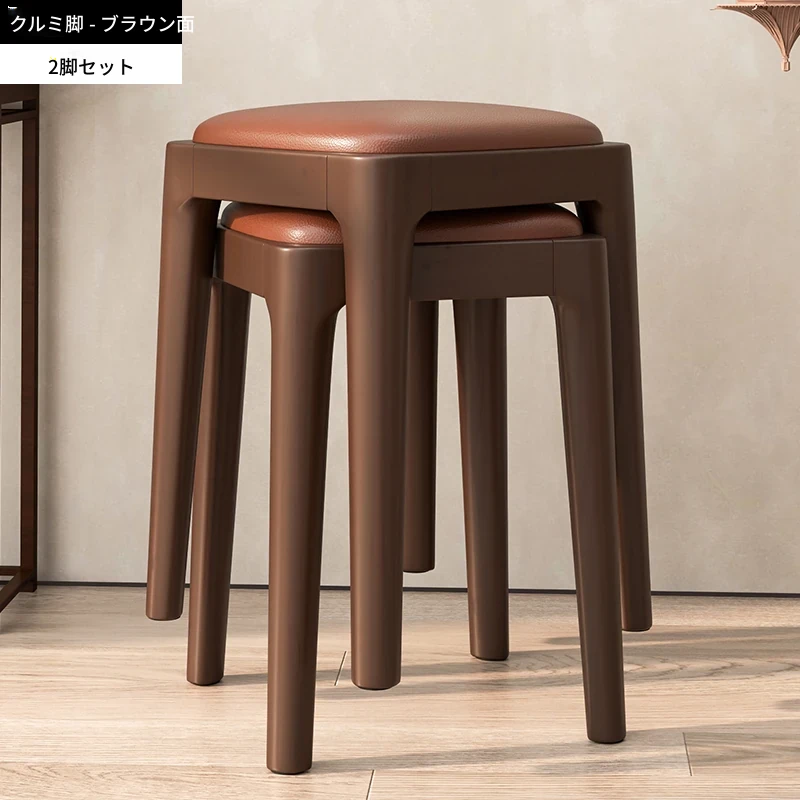 アップグレード版-ウォールナット色⭐ブラウンの座面【外貿ゴムの木 完成品発送】2脚