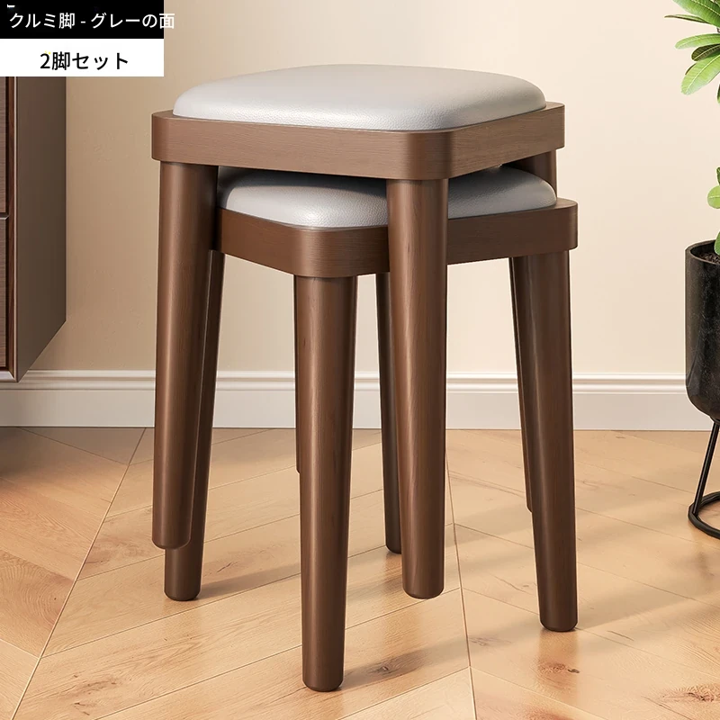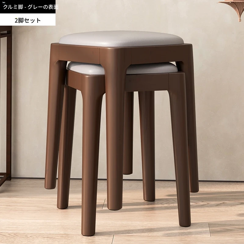 アップグレード版-ウォールナット色⭐グレーの座面【外貿ゴムの木 完成品発送】2脚