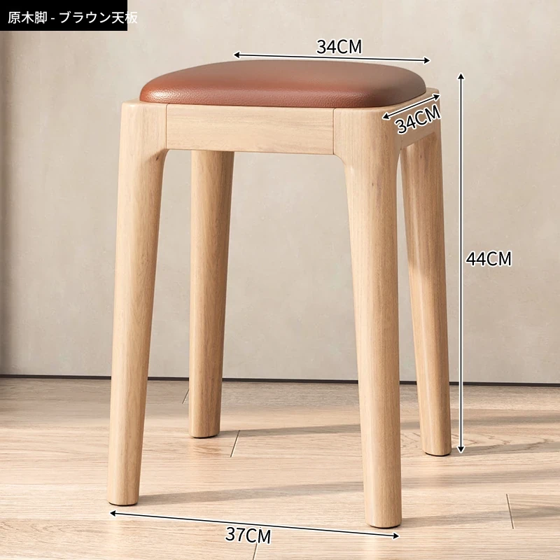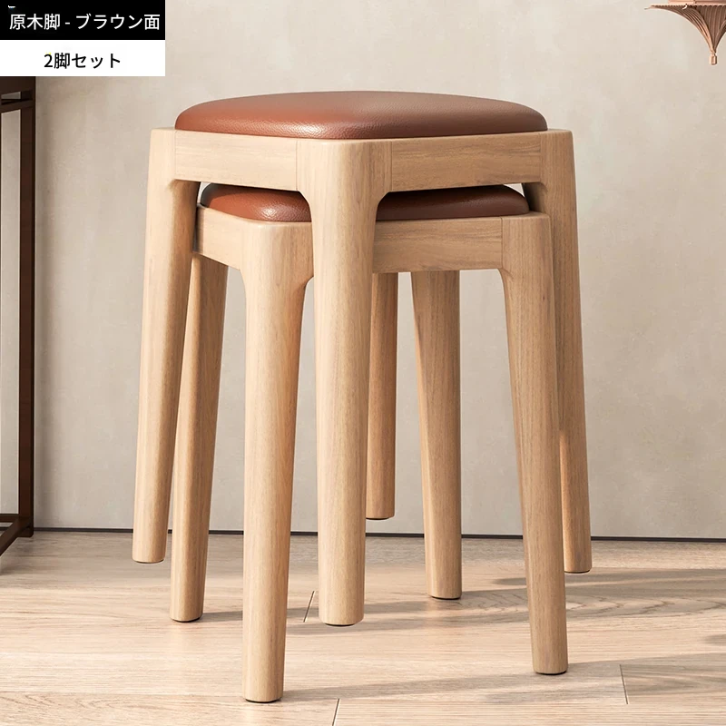 アップグレード版-ナチュラル色⭐ブラウンの座面【外貿ゴムの木 完成品発送】2脚