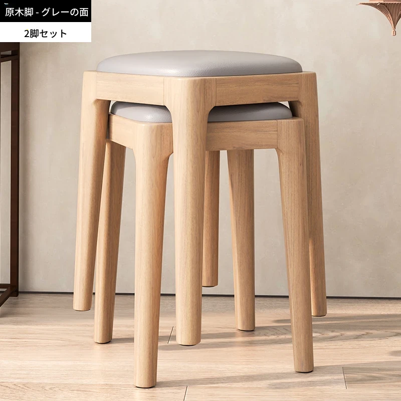 アップグレード版-ナチュラル色⭐グレーの座面【外貿ゴムの木 完成品発送】2脚