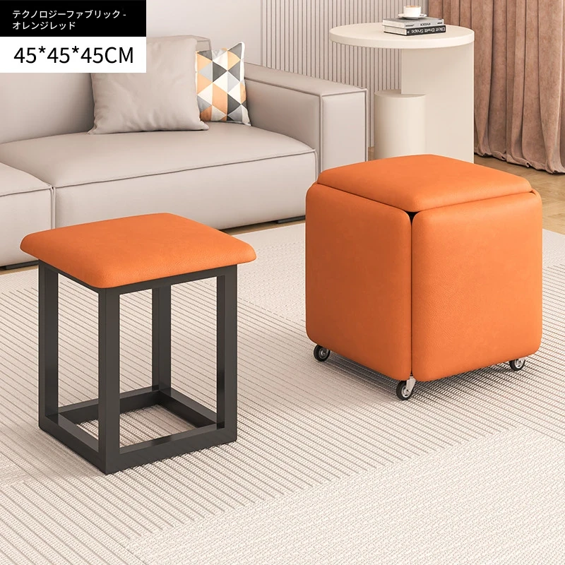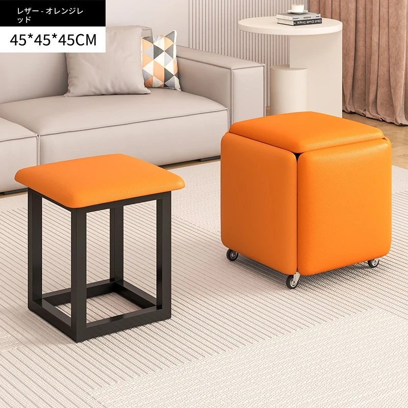 ダイニングテーブルに使える【ナパ防刮皮 メタルフレーム】45*45オレンジレッド