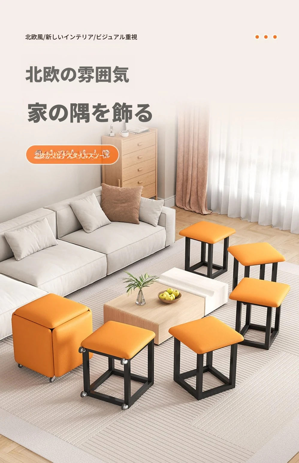 茶テーブルに使える【ナパ防刮皮 メタルフレーム】35*35オレンジレッド