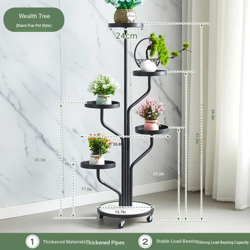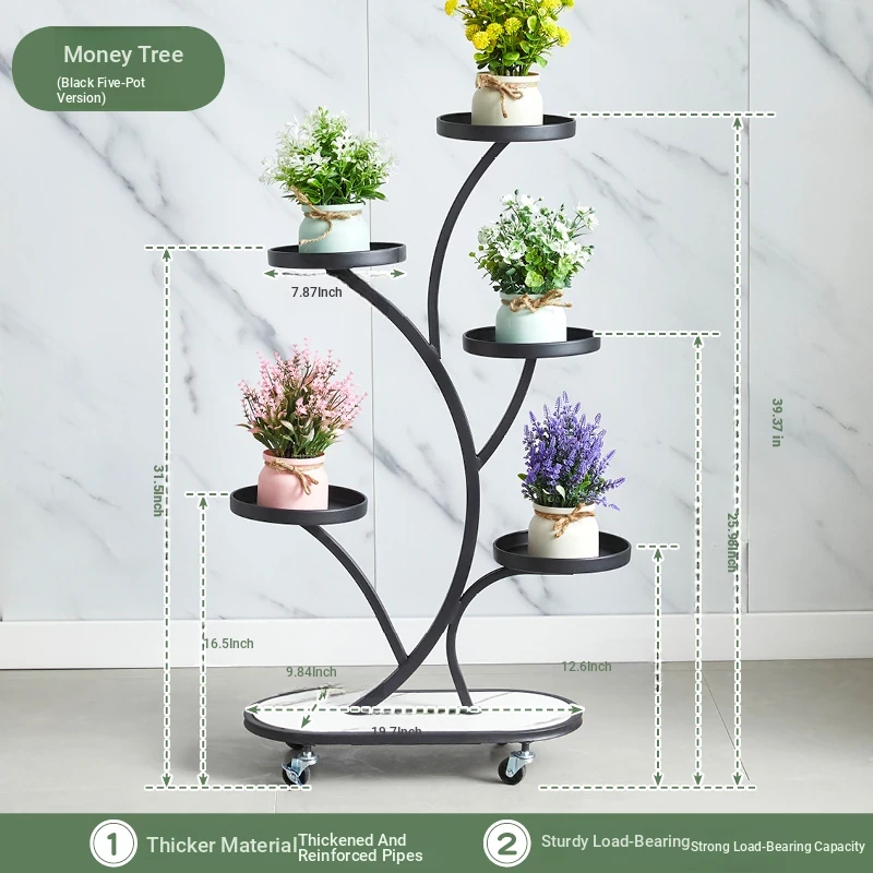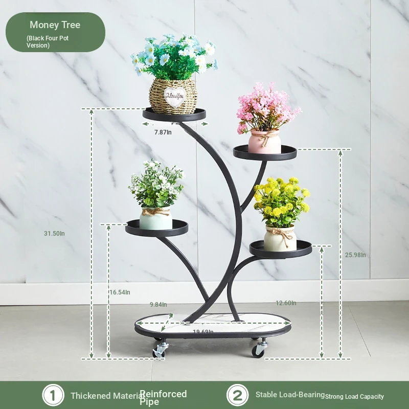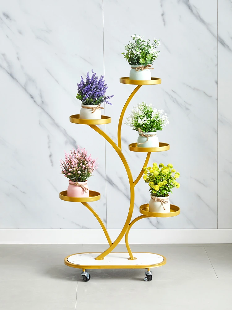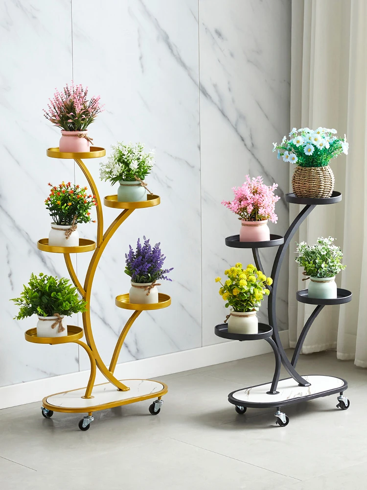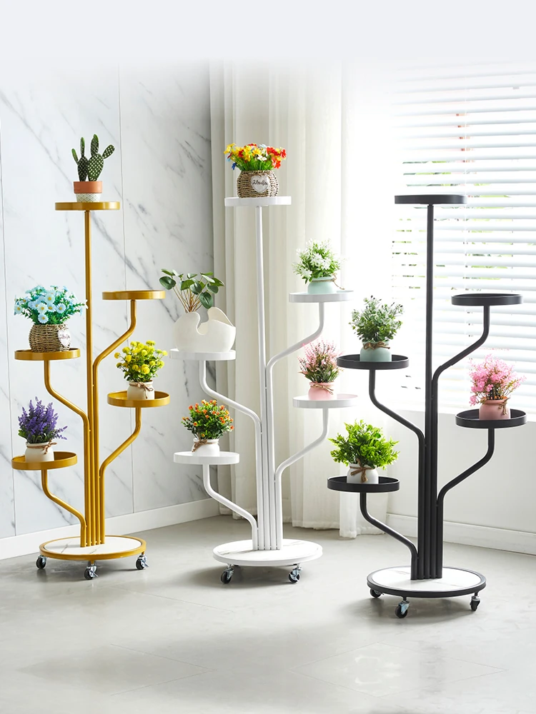スタイリッシュなリビング用移動式フラワースタンド - 鉄製の多層プランターラックで、バルコニーや室内で多肉植物を美しくディスプレイ!