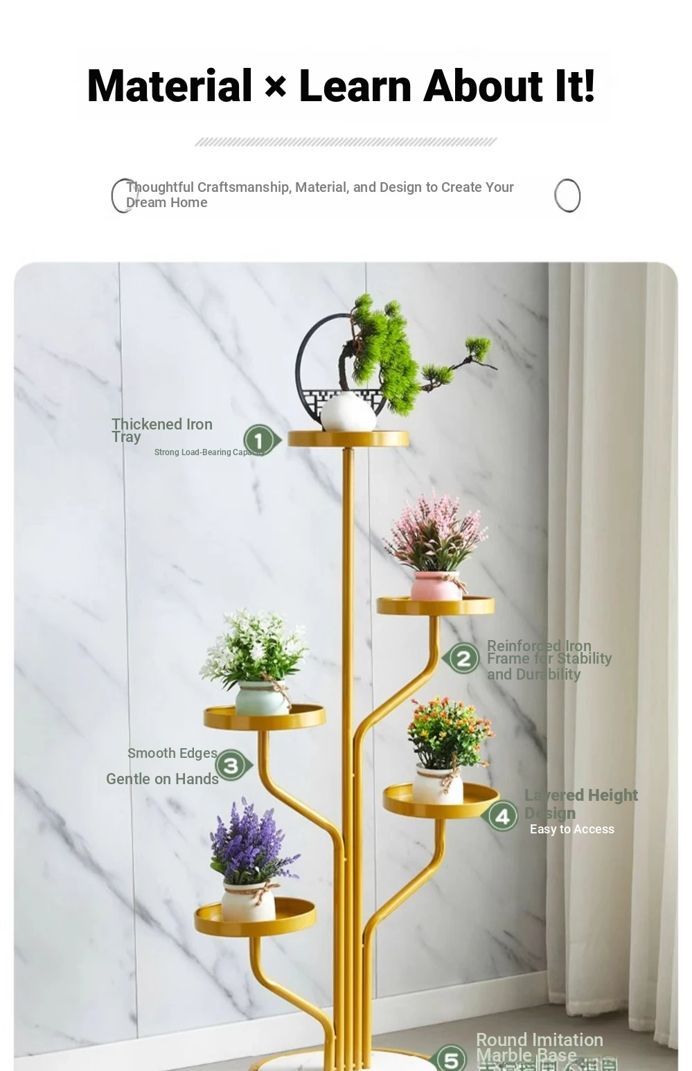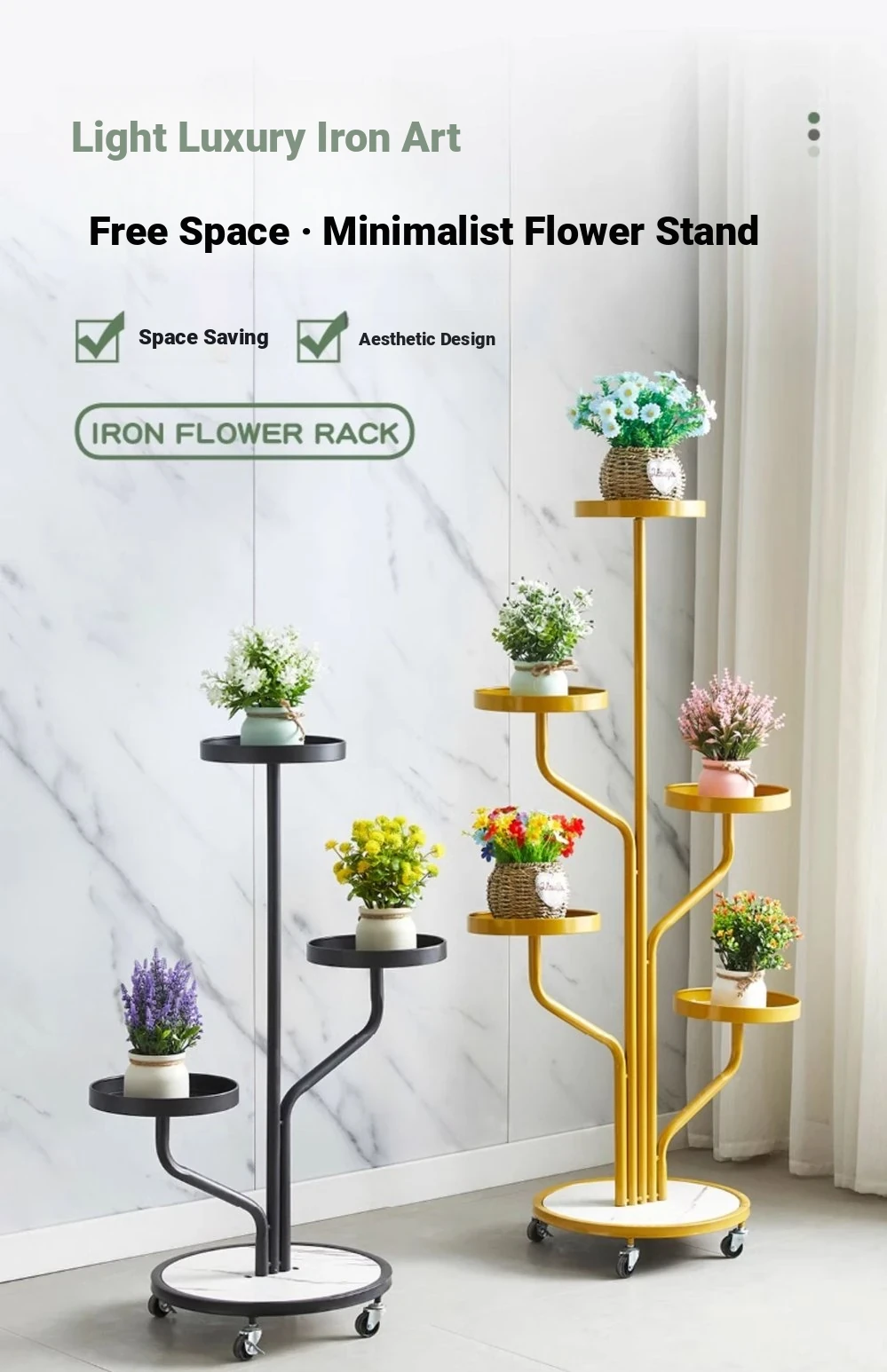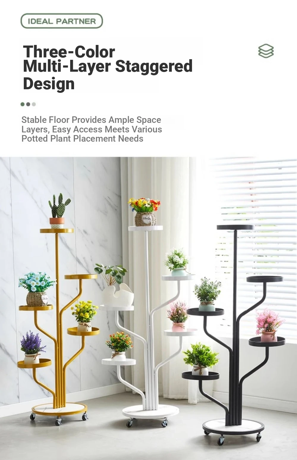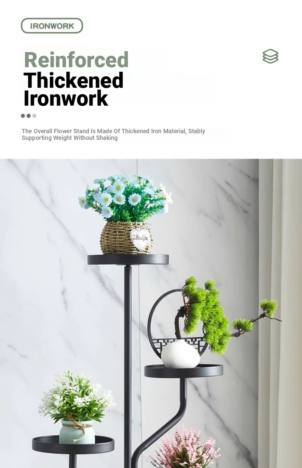 スタイリッシュなリビング用移動式フラワースタンド - 鉄製の多層プランターラックで、バルコニーや室内で多肉植物を美しくディスプレイ!