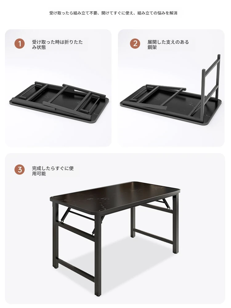 【折りたたみ☆取り付け不要】120*60*74CMブラックテクスチャーカラー