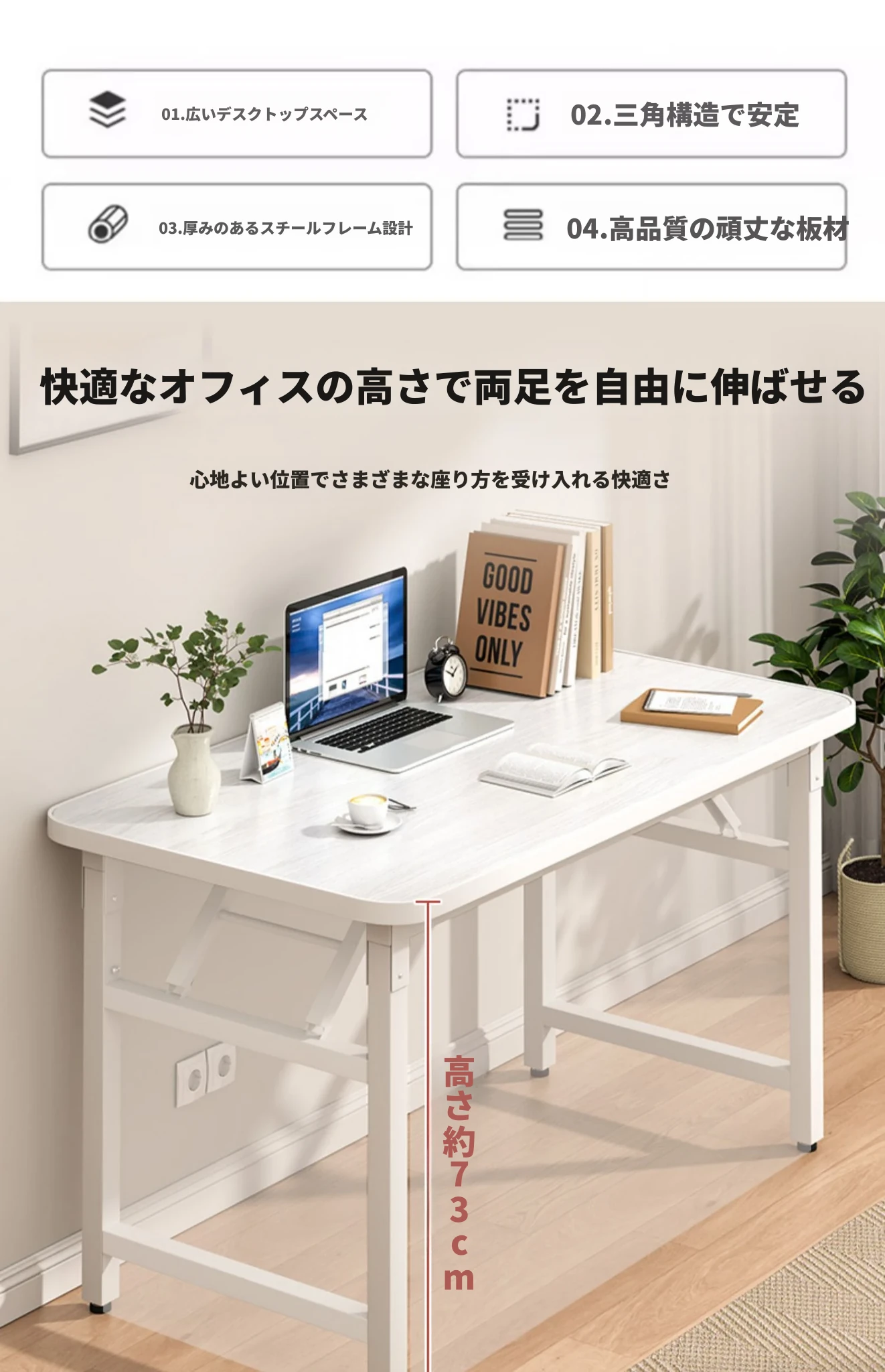 【折りたたみ☆取り付け不要】80*40*74CMホワイトテクスチャーカラー