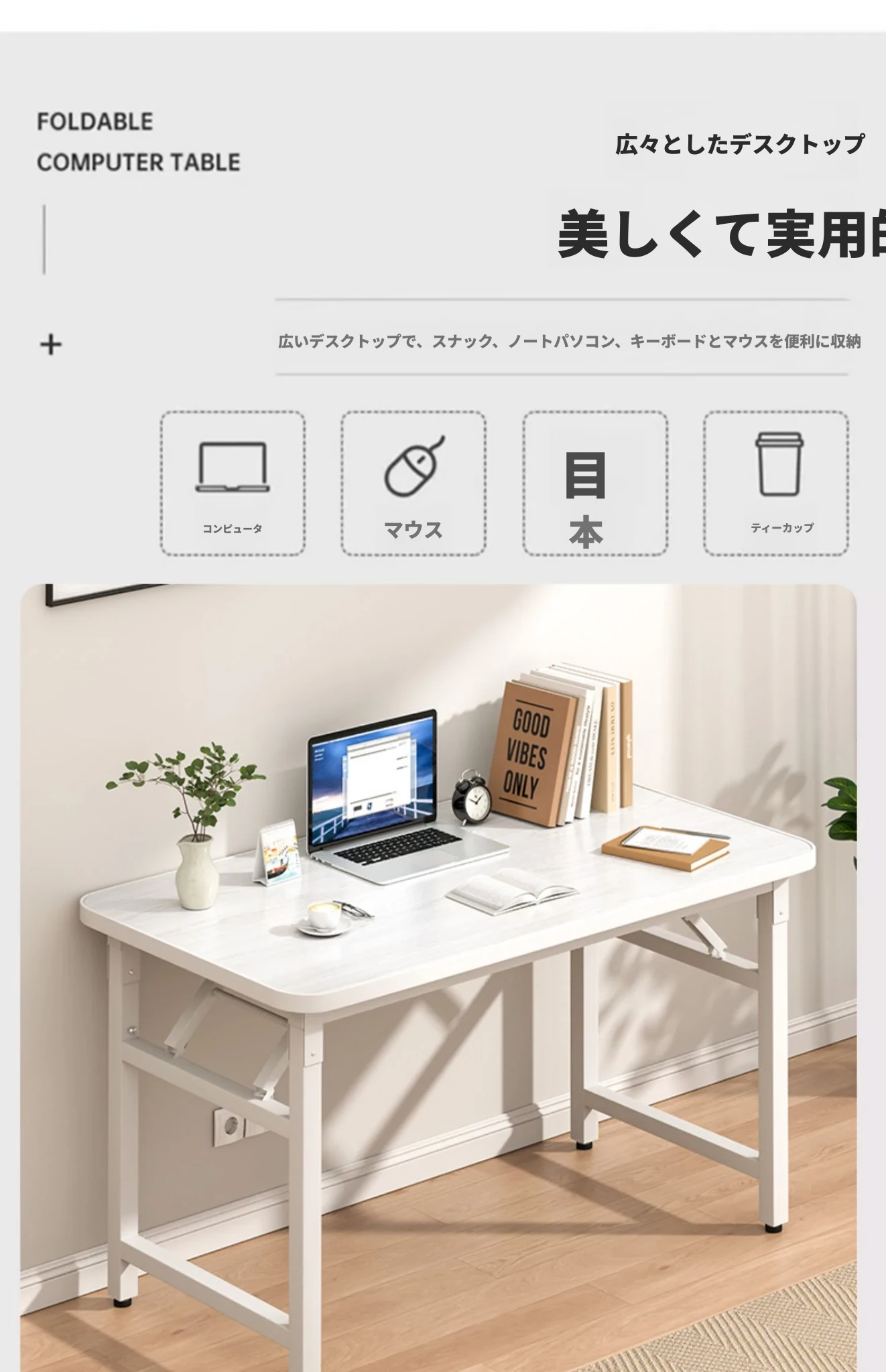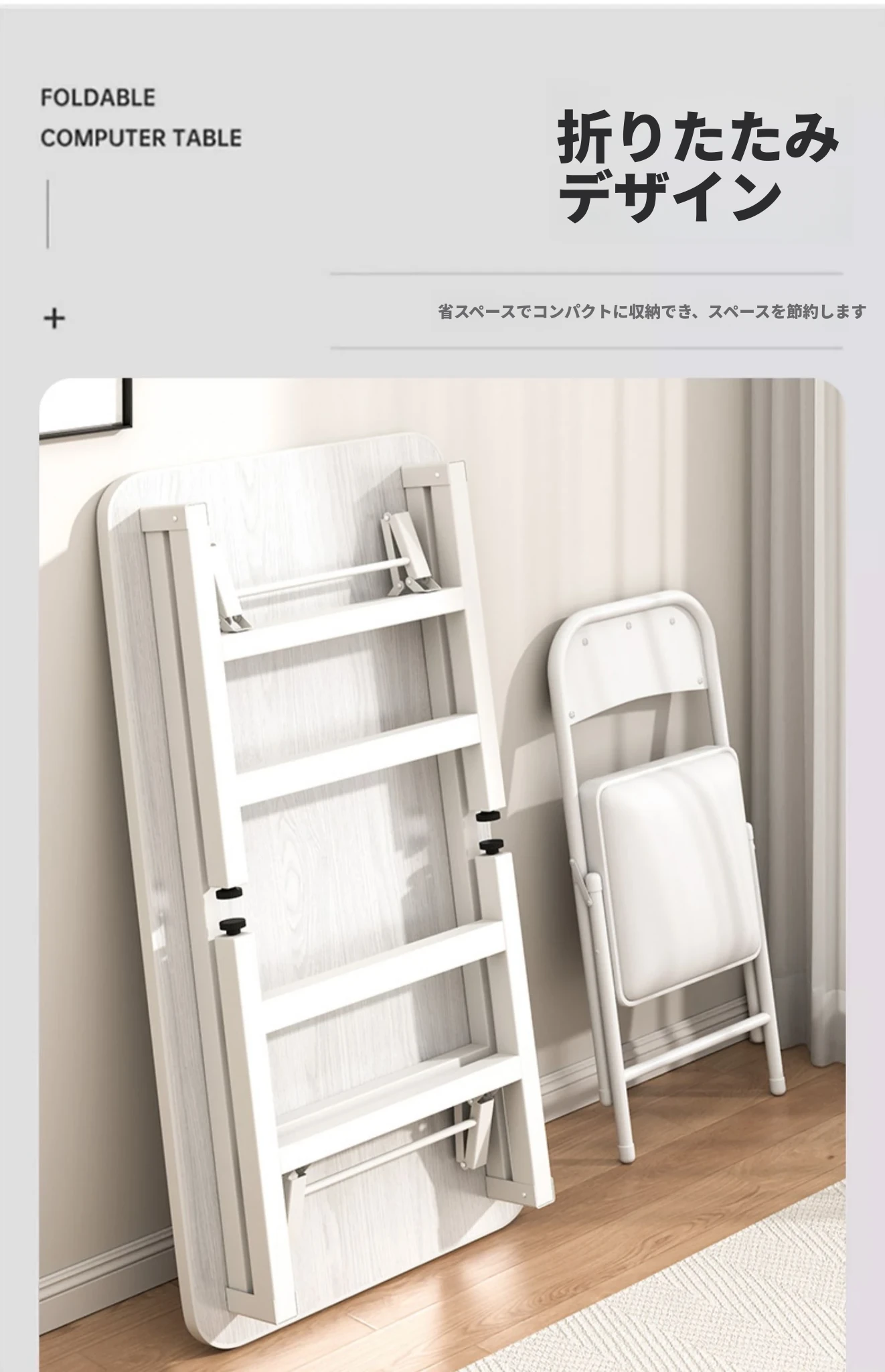 【折りたたみ☆取り付け不要】100*60*74CMホワイトウッドカラー