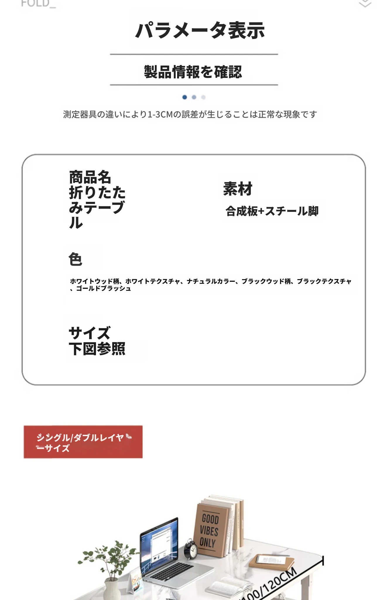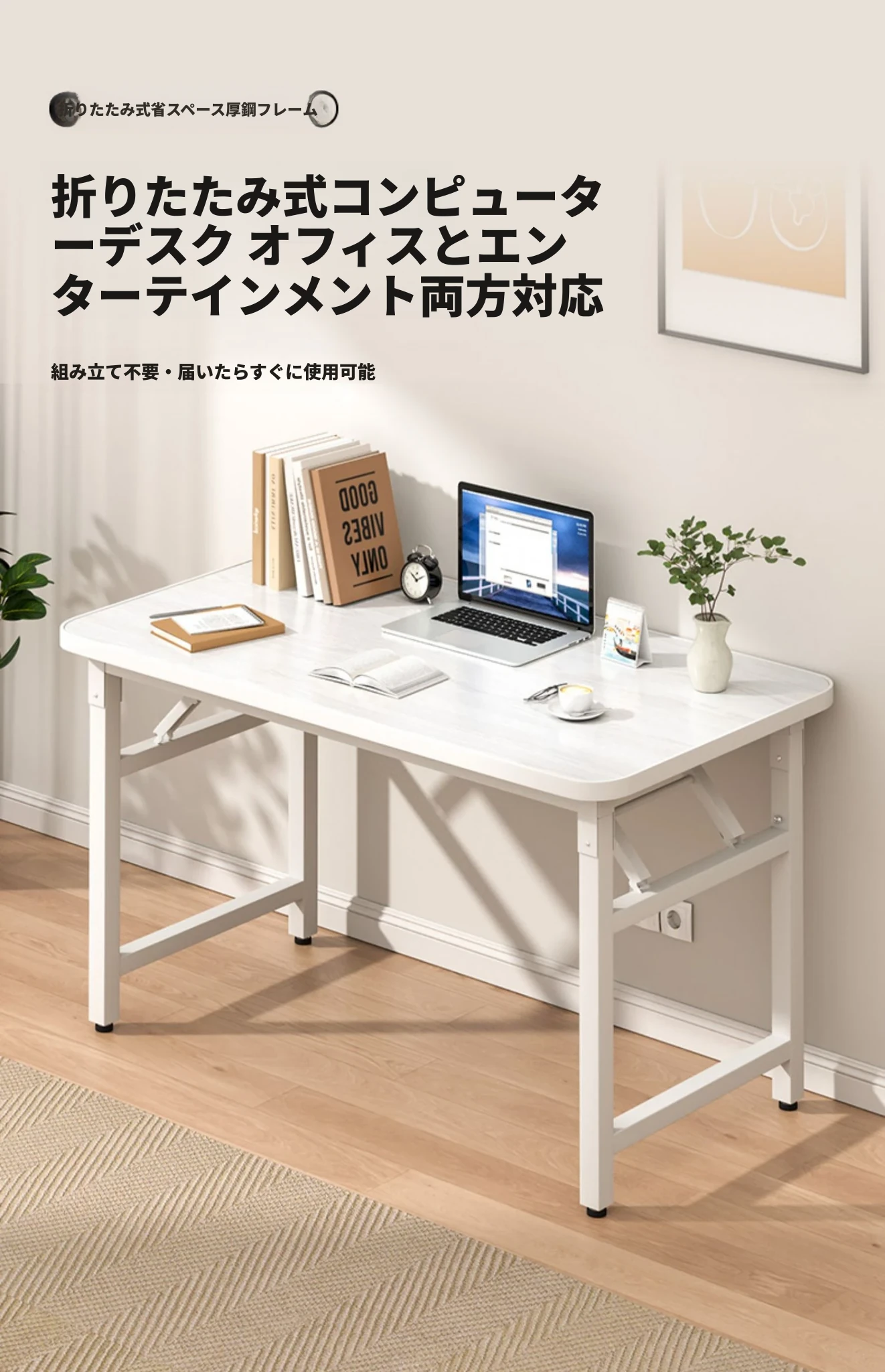 【折りたたみ☆取り付け不要】120*60*74CMホワイトテクスチャーカラー