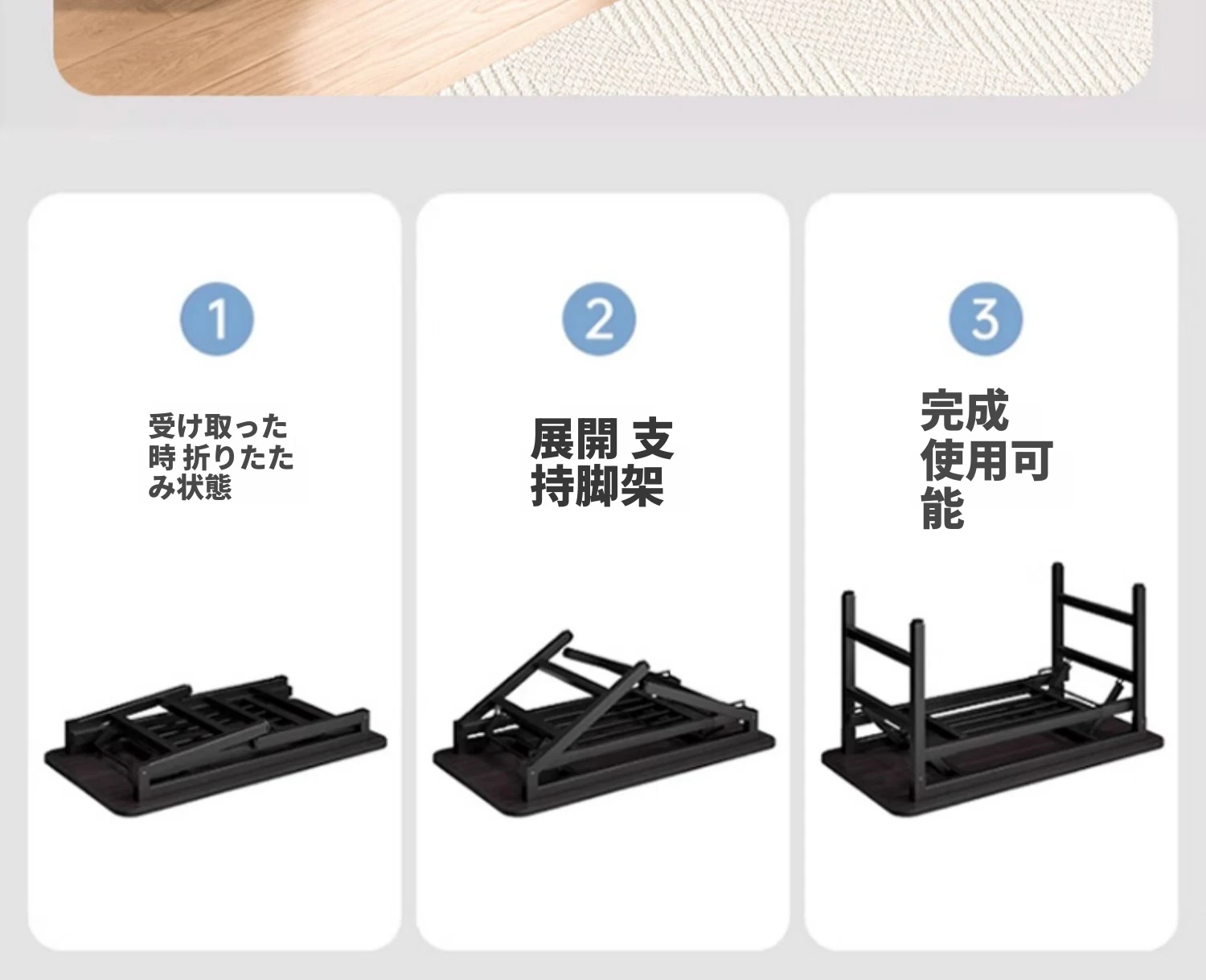 二段【折りたたみ☆取り付け不要】100*60*74CMブラックテクスチャーカラー