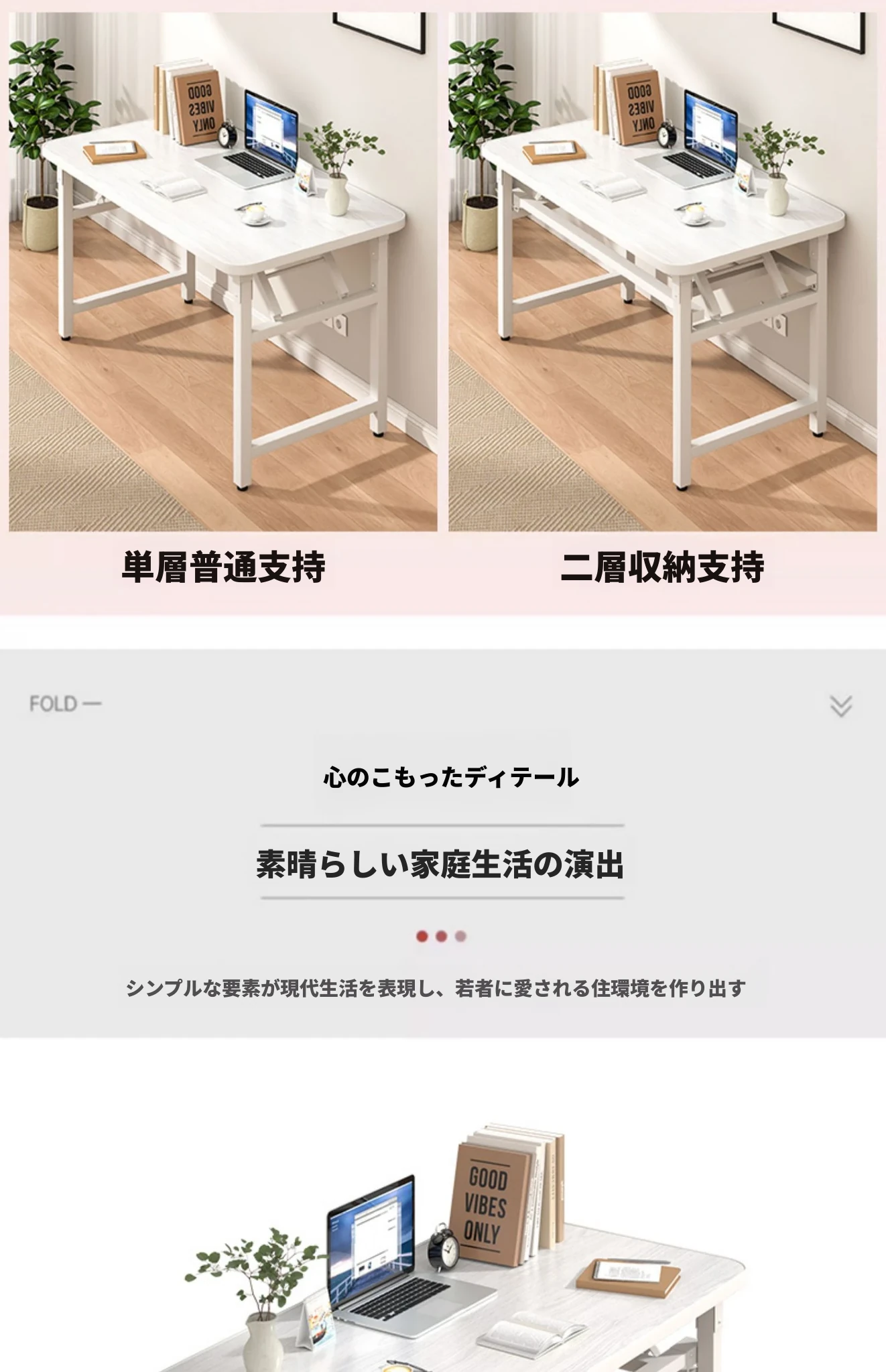 二段【折りたたみ☆取り付け不要】100*60*74CMホワイトテクスチャーカラー